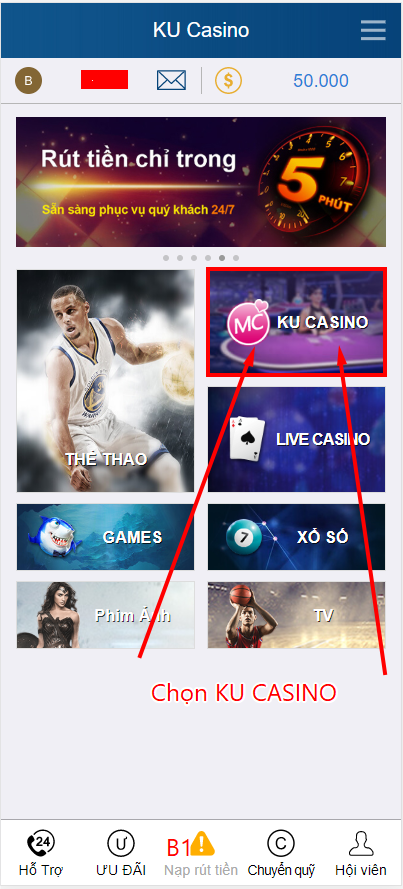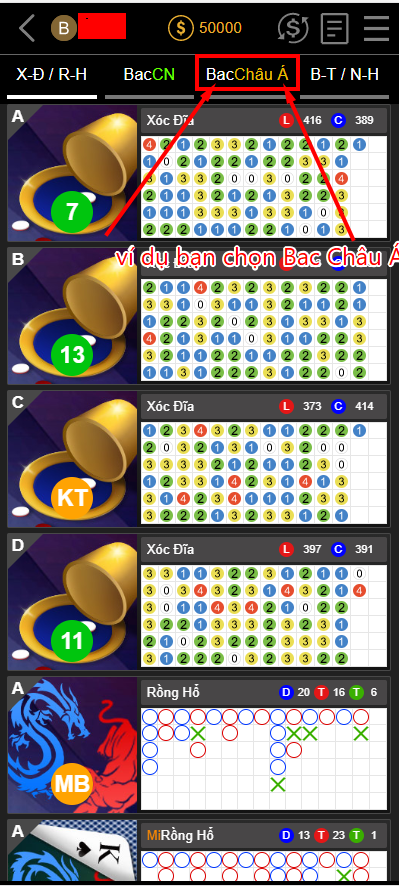 ♣ Bước 2: Chọn Baccarat châu Á hoặc BacCN