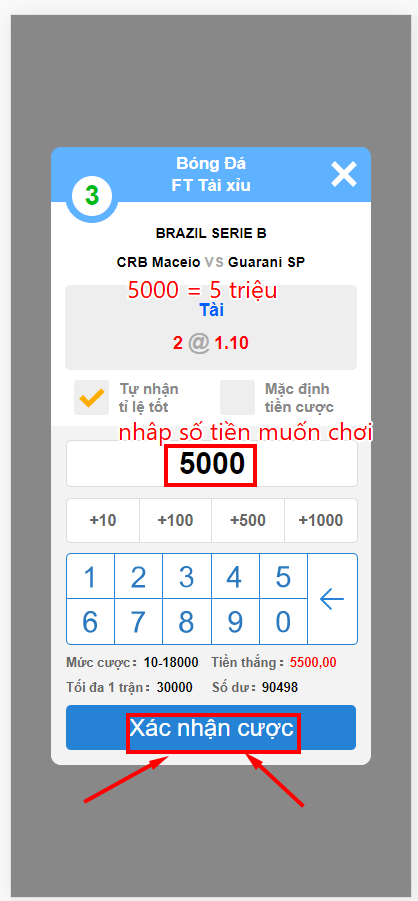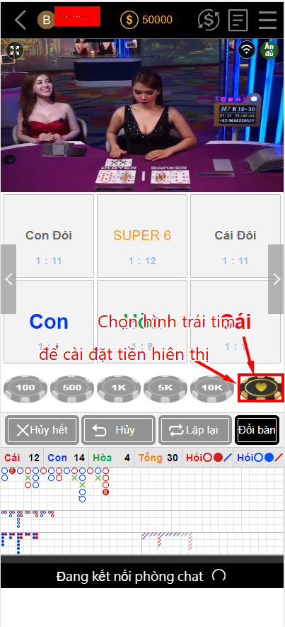 ♣ Bước 6: Bạn đặt tiền các cửa con- cái- hòa- con đôi- cái đôi- con long bảo- cái long bảo tùy bạn.