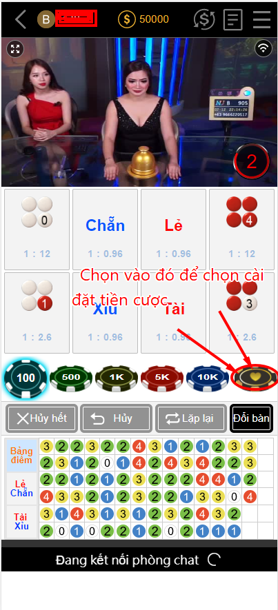 ♣ Bước 5: Cuối cùng bạn đánh cửa nào bạn đặt tiền vào cửa đó: Có các cửa Chẵn, lẻ, xỉu, tài, tứ, 3 trắng, 3 đỏ