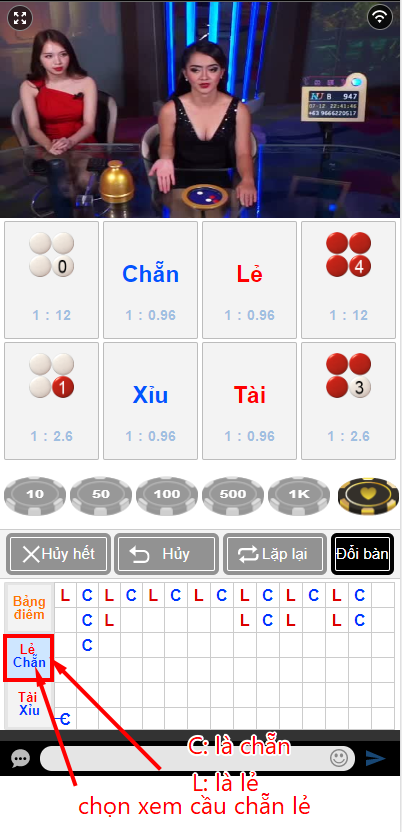 - Cầu chẵn lẻ : Hiển thị kết quả chẵn và lẻ