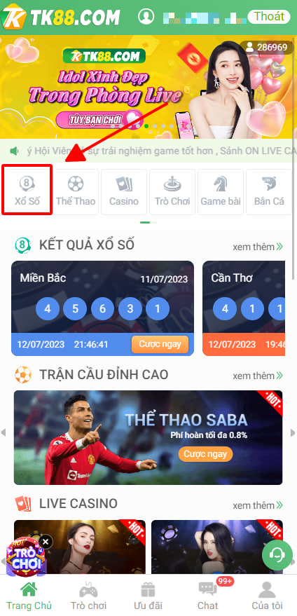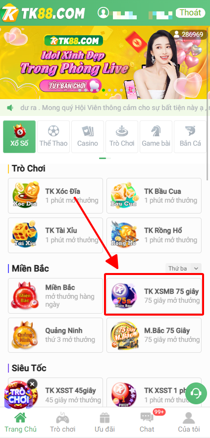 - BƯỚC 2: SAU KHI ĐĂNG NHẬP VÀ NẠP TIỀN THÌ CHỌN XỔ SỐ