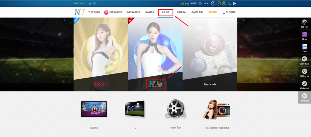 Đầu tiên bạn cần truy cập vào trang chủ KUBET bấm vào link này MUBET.NNET. Tại giao diện trang chủ bạn chọn mục xổ số trên thanh Menu như hình minh họa nhé