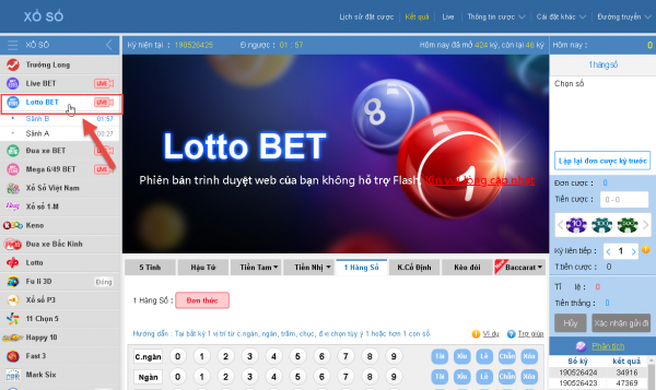 Bước 3: Vào Lotto Bet để chơi