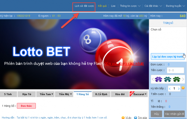 *** Bạn có thể kiểm tra lại đơn cược của mình bằng cách bấm vào “Lịch sử đặt cược” để kiểm tra lại kết quả tiền thắng thua.