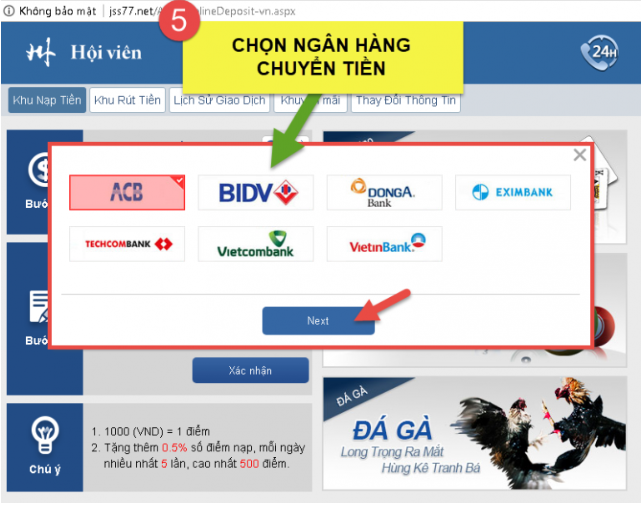 Bước này các bạn chọn ngân hàng chuyển tiền.