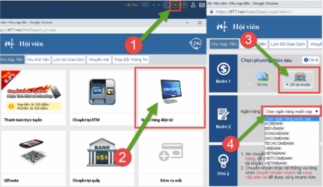 Nạp qua ngân hàng điện tử