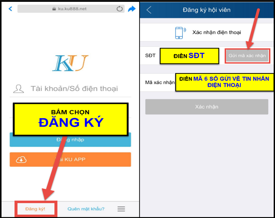 Nhập số điện thoại chính xác của mình vào và bấm gửi mã xác nhận. Nhận mã được gửi về điện thoại và điện mã vào gồm 6 chữ số. Sau đó bấm xác nhận.
