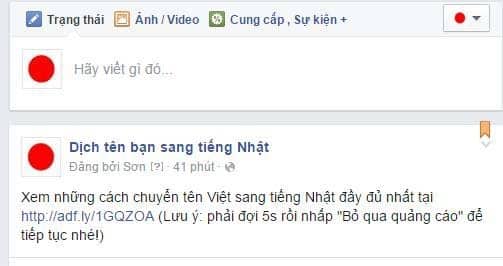 Bạn hãy tạo một Fanpage facebook về một chủ đề nào đó, sau đó bạn chia sẻ link rút gọn tại đây, để hiệu quả và nhàn hạ, bạn hãy viết một bài có link rút gọn liên kết đến một nội dung nào đó thật hấp dẫn mà phải liên quan đến chủ đề Fanpage của bạn. Chẳng hạn như bạn tạo một trang Fanpage có tên “Dịch tên bạn sang tiếng Nhật”, rồi bạn viết một bài viết có link rút gọn và ghim bài viết lên đầu trang kiểu như sau:
