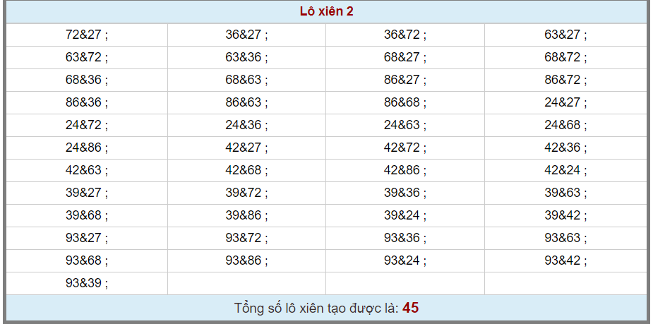 DÀN XIÊN 45 CẶP