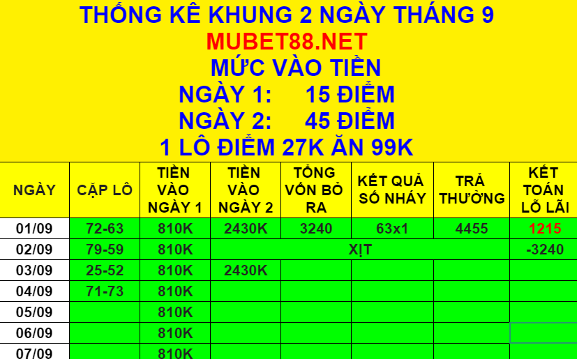 MUBET – BET9 đã cho các bạn các cặp lô đẹp 59-95-79-97