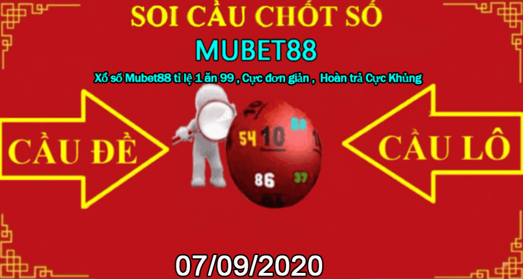 MUBET88 hôm qua cầu không về chỉ ĂN được dàn 65s như trang chốt như thường lệ .Trang MUBET88 Hứa Hẹn Sẽ Ăn Thông Những Ngày Sắp Tới Mọi Người Nhớ Đón Xem Và Theo Dõi Cùng MUBET88 Nhé. Gửi lời Chúc Mừng đến các quý hôi viên của BET9 – KUBET yêu thích lô. Với sự cố gắng và các cách soi cầu mới lạ thì Hứa Hẹn KU BET 88 Sẽ mang đến cho quý hội viên MUBET88 – KU BET một kết quả Đáng Hi Vọng cho bài chốt ngày 07/09/2020