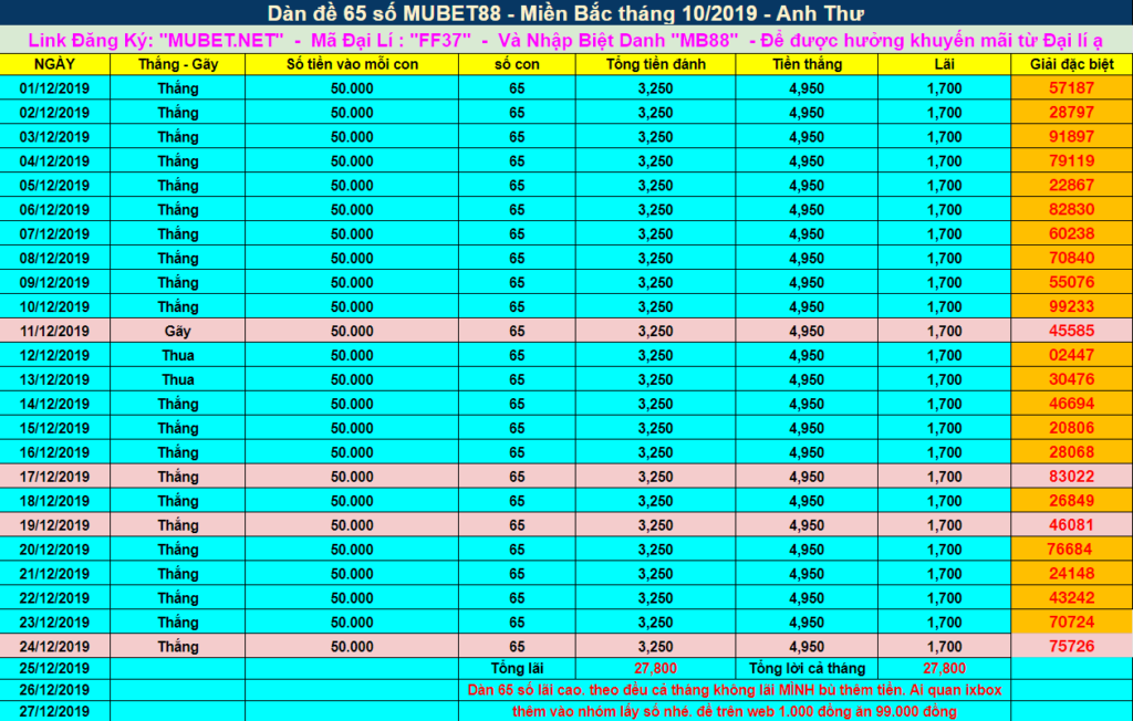 MUBET88 CHÚC MỪNG Cả nhà hôm qua ĂN được STL: 79-97 và Dàn 36s và Dàn 19s.Trang MUBET88 Hứa Hẹn Sẽ Ăn Thông Những Ngày Sắp Tới Mọi Người Nhớ Đón Xem Và Theo Dõi Cùng MUBET88 Nhé. Gửi lời CHÚC MỪNG đến các quý hôi viên của BET9 – KUBET yêu thích lô. Với sự cố gắng và các cách soi cầu mới lạ thì Hứa Hẹn KU BET 88 Sẽ mang đến cho quý hội viên MU BET – KU BET một kết quả Đáng Hi Vọng cho bài chốt ngày 25/12/2019