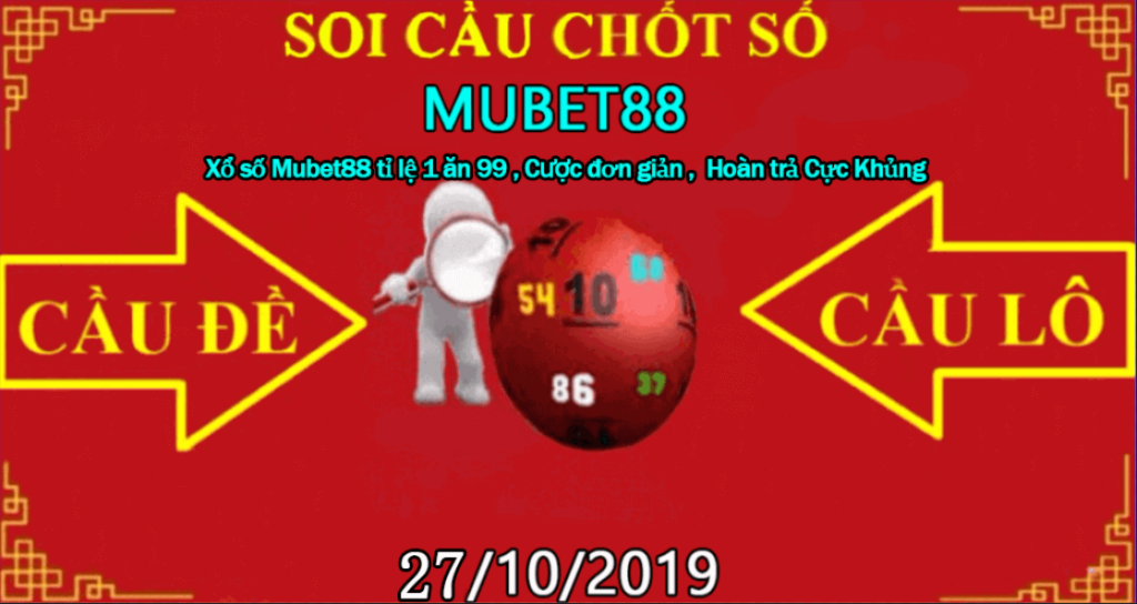 MUBET88 CHÚC MỪNG Cả nhà hôm qua cầu ĂN 2 NHÁY 42 VÀ ĂN DÀN 65S .Trang MUBET88 Hứa Hẹn Sẽ Ăn Thông Những Ngày Sắp Tới Mọi Người Nhớ Đón Xem Và Theo Dõi Cùng MUBET88 Nhé. Gửi lời XIN LỖI đến các quý hôi viên của BET9 – KUBET yêu thích lô. Với sự cố gắng và các cách soi cầu mới lạ thì Hứa Hẹn KU BET 88 Sẽ mang đến cho quý hội viên MU BET – KU BET một kết quả Đáng Hi Vọng cho bài chốt ngày 26/10/2019