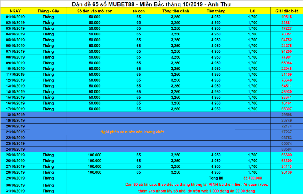 MUBET88 CHÚC MỪNG Cả nhà hôm qua cầu ĂN STL 06-60 VÀ ĂN DÀN 65S VÀ DÀN 32S.Trang MUBET88 Hứa Hẹn Sẽ Ăn Thông Những Ngày Sắp Tới Mọi Người Nhớ Đón Xem Và Theo Dõi Cùng MUBET88 Nhé. Gửi lời CHÚC MỪNG đến các quý hôi viên của BET9 – KUBET yêu thích lô. Với sự cố gắng và các cách soi cầu mới lạ thì Hứa Hẹn KU BET 88 Sẽ mang đến cho quý hội viên MU BET – KU BET một kết quả Đáng Hi Vọng cho bài chốt ngày 28/10/2019