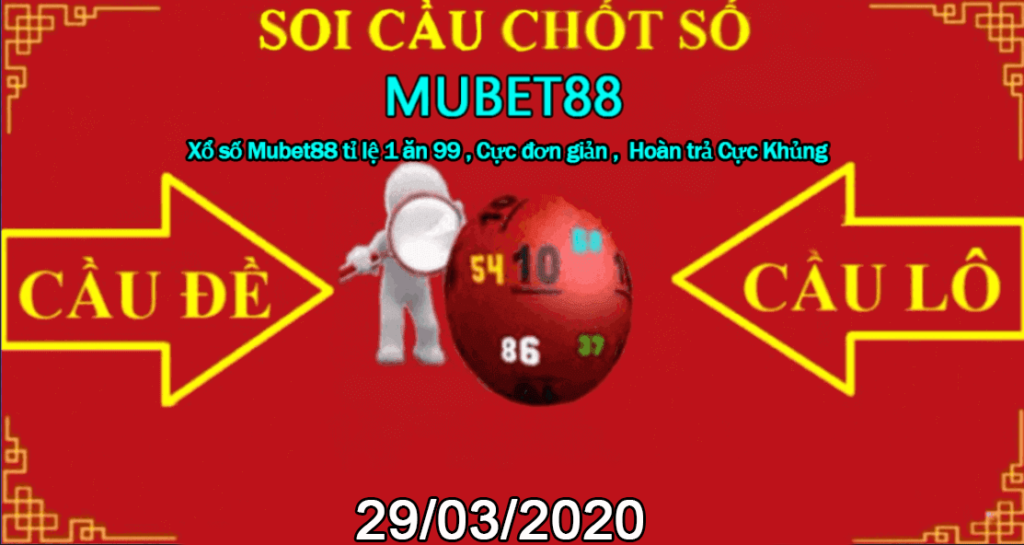 MUBET88 Kính Chúc quý khách ngày mới rực rỡ.Mọi Người Nhớ Đón Xem Và Theo Dõi Cùng MUBET88 Nhé.  Gửi lời CHÚC MỪNG đến các quý hôi viên của BET9 – KUBET yêu thích lô. Với sự cố gắng và các cách soi cầu mới lạ thì Hứa Hẹn KU BET 88 Sẽ mang đến cho quý hội viên MU BET – KU BET – BIG BET 68 một kết quả Đáng Hi Vọng cho bài chốt ngày 29/03/2020
