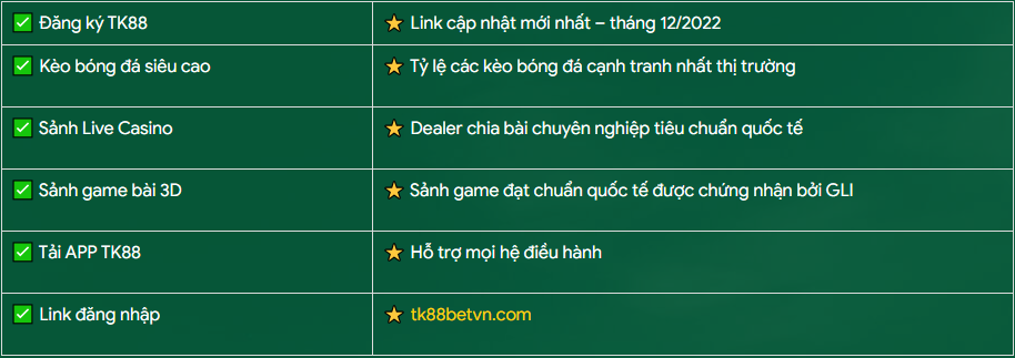Bài viết “TK88 – TK88 Bet | Trang Chủ Cá Độ Bóng Đá TK88.Com” khẳng định mức độ chiều lòng khách hàng cùng các dịch vụ sản phẩm hot nhất của chúng tôi.