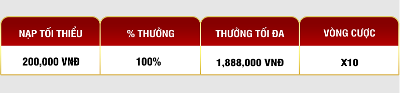 THÀNH VIÊN MỚI THAM GIA NHẬN NGAY 100% THƯỞNG NẠP ĐẦU LÊN ĐẾN 1888K