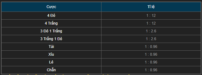Xóc đãi có rất nhiều cửa cược thú vị cho người chơi lựa chọn với tỷ lệ ăn cược vô cùng hấp dẫn, có những cửa cược tỷ lệ lên đến 1:12, dễ dàng giúp anh em kiếm thật nhiều tiền chỉ bằng 2,3 ván cược.